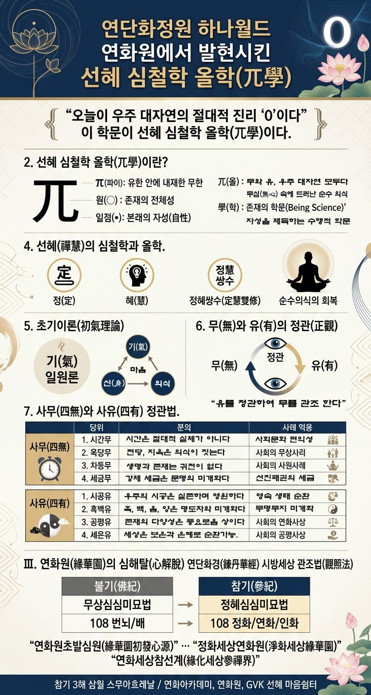 연단화정원 하나월드 참선도 연화원(緣華園)에서 발현시키는 선혜 심철학(心哲學) 올학(兀學)이란?